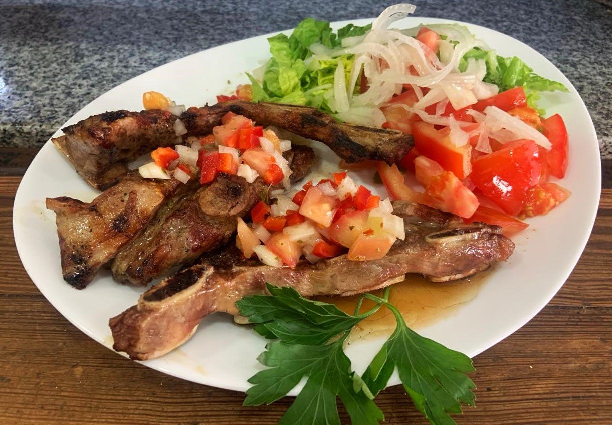 Asado a la parrilla con salsa criolla y ensalada mixta