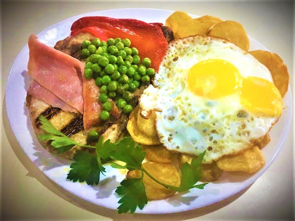 Bife de lomo con guarnición