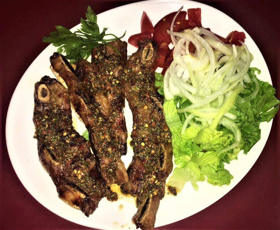 Costillitas de cerdo “Senegal” con papas rejilla