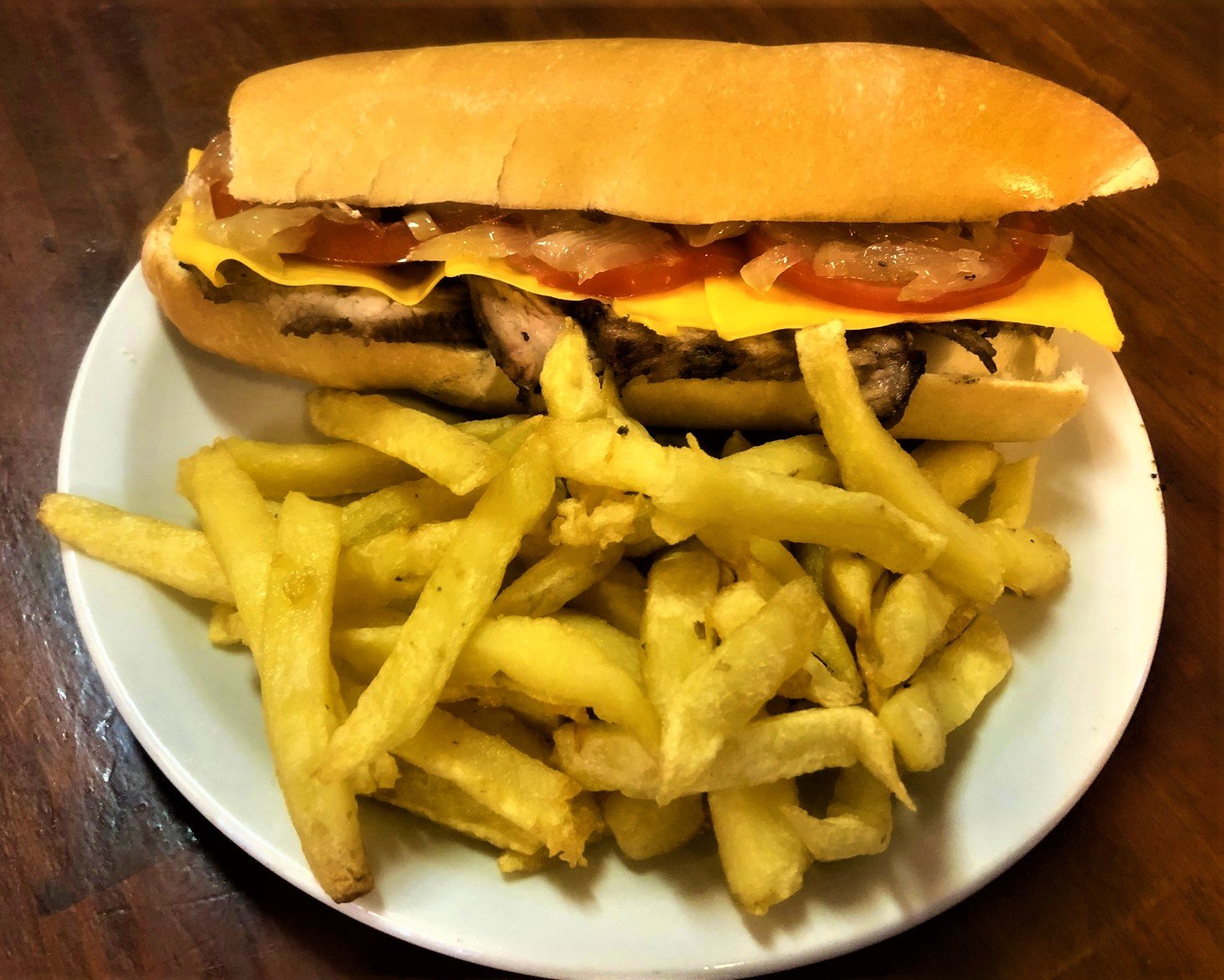 Bondiola Grillada, Queso, Tomate, Lechuga, Jamón y Morrón Asado en Pan de Pizza