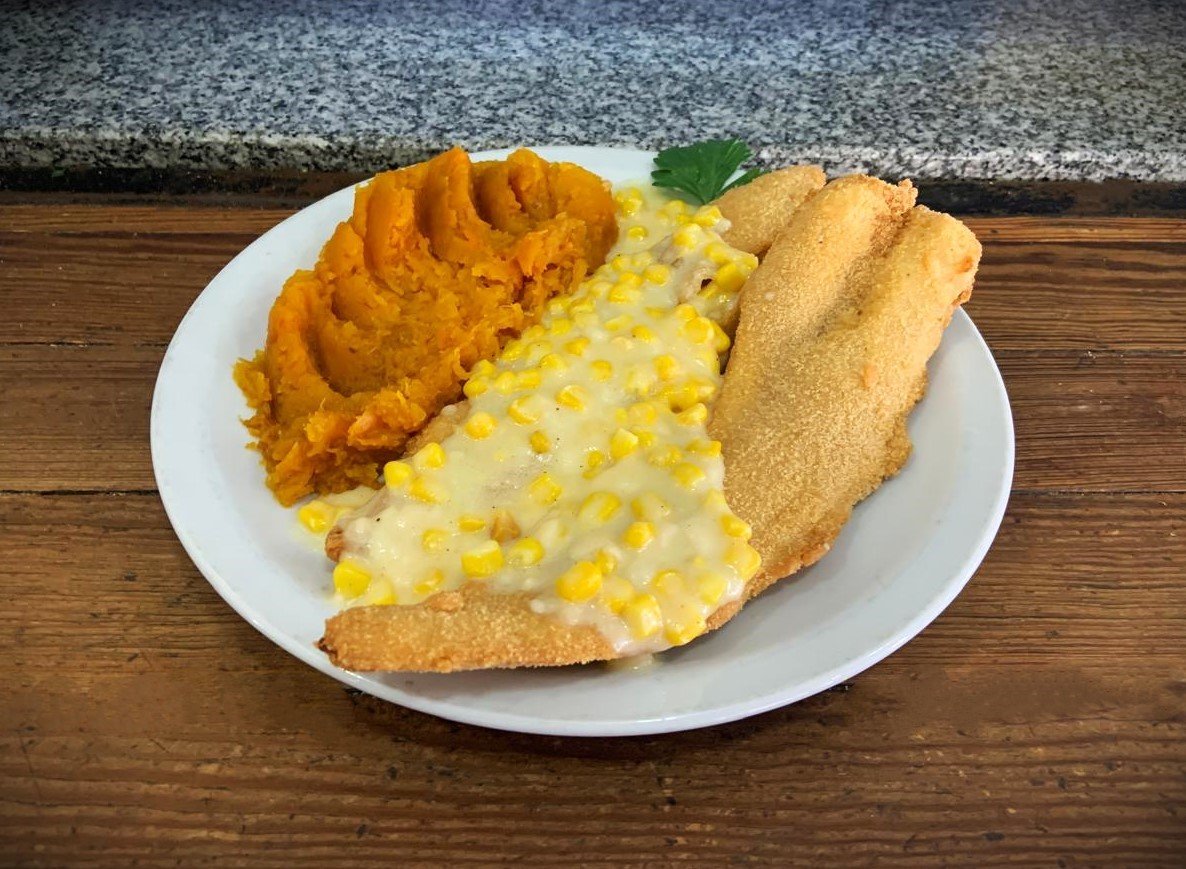 Filet de merluza con crema de choclo y puré de calabaza cantidad