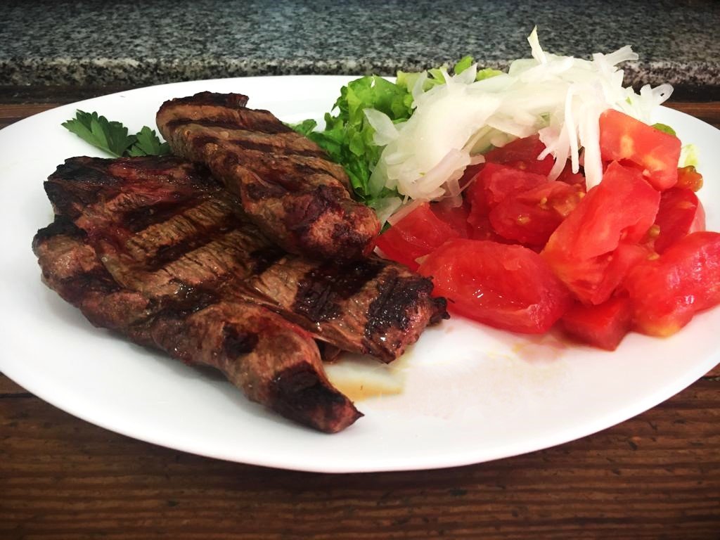 Pollo grillado con espaguetis salteados, verdura y salsa de soja