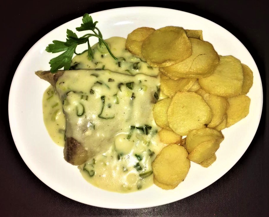 Matambre tiernizado a la crema de verdeo con papas españolas