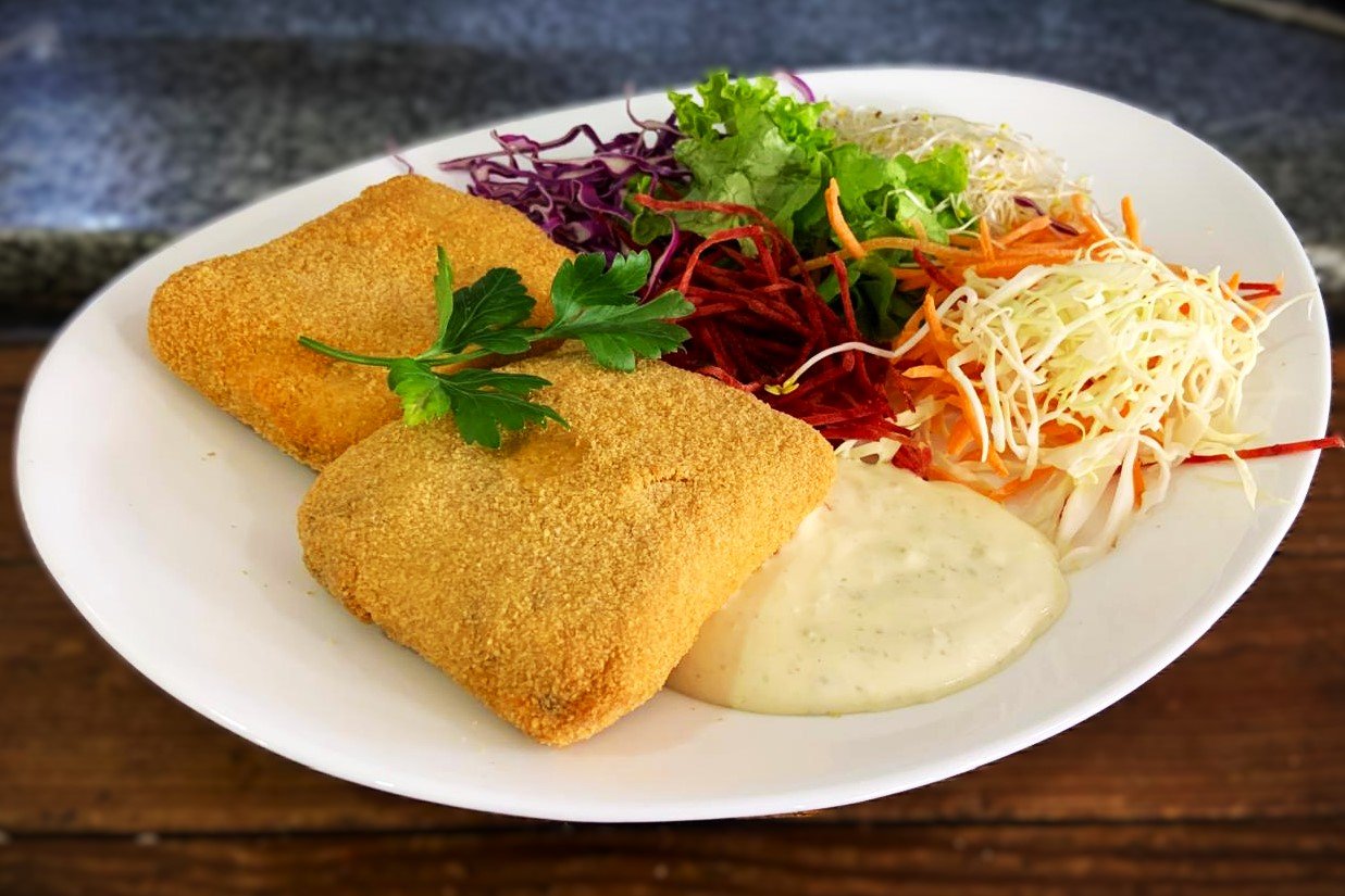Milanesitas de muzzarella (2) con mix de verduras y aderezo césar
