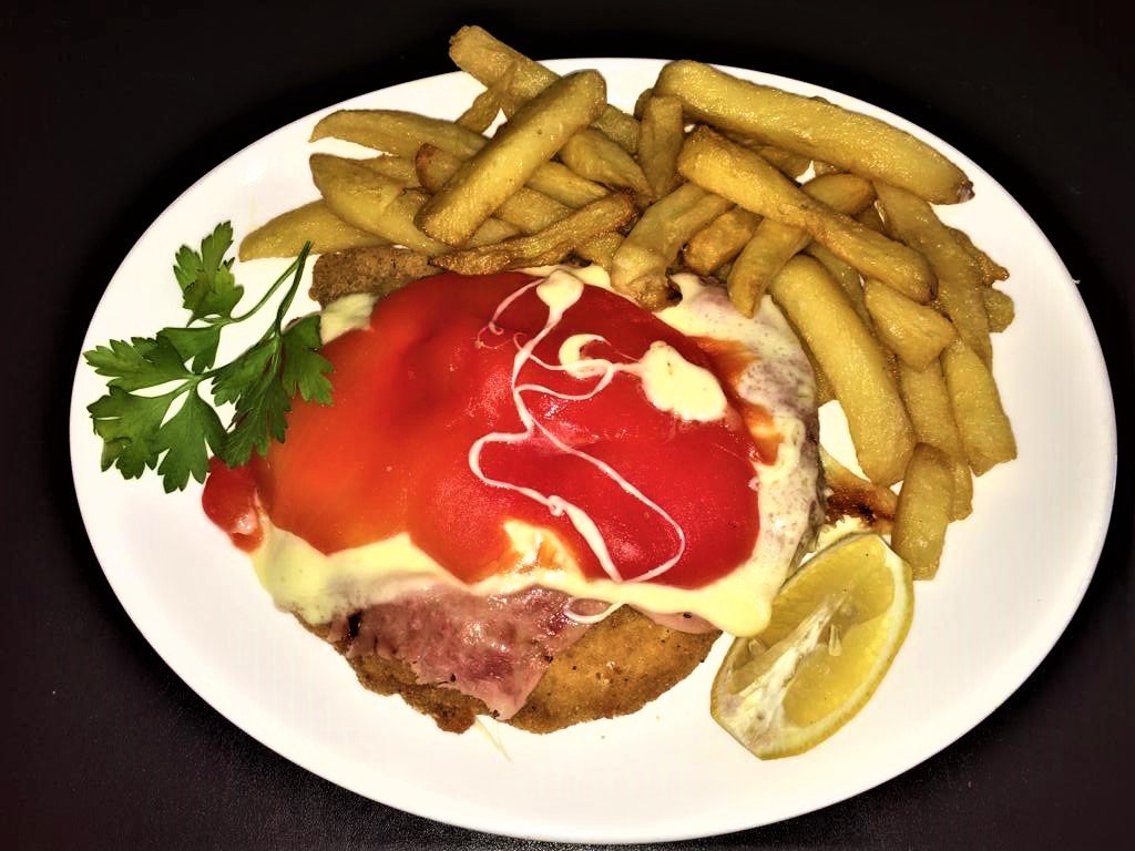 Canelones de ricota, jamón, verdura y muzzarella con salsa panna gratinada