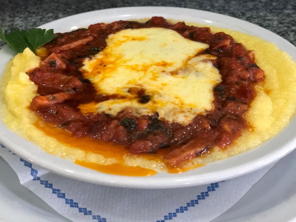 Polenta con salsa Amatriciana (Tomate, panceta, albahaca y muzzarella) cantidad