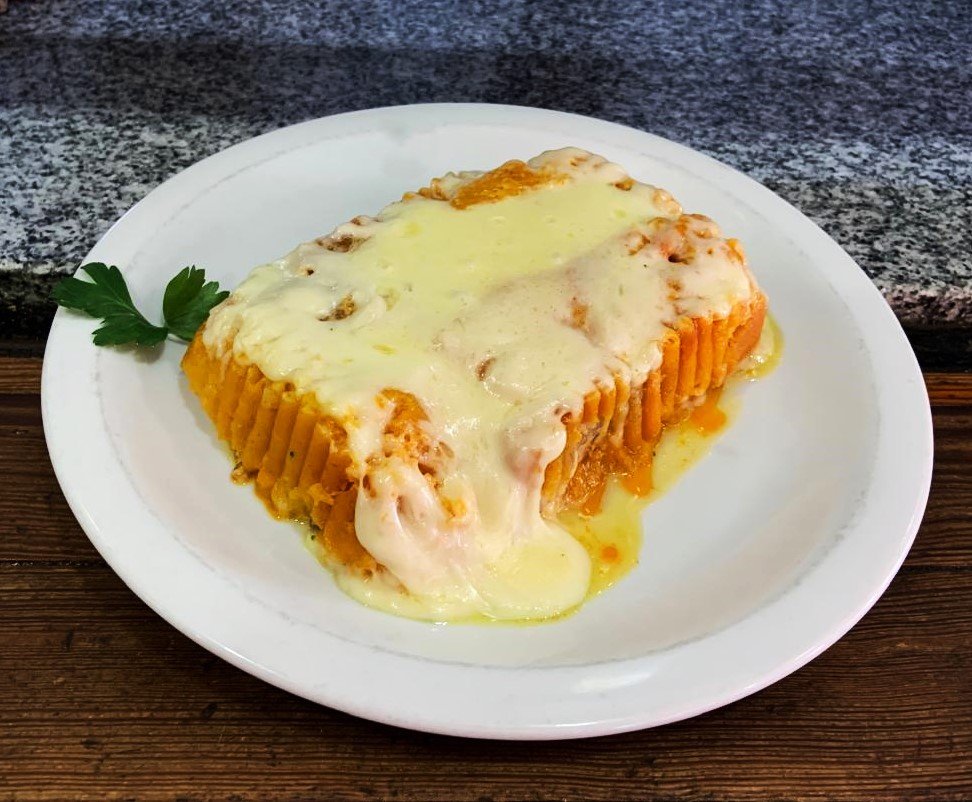 Pastel de calabaza y pollo al graten