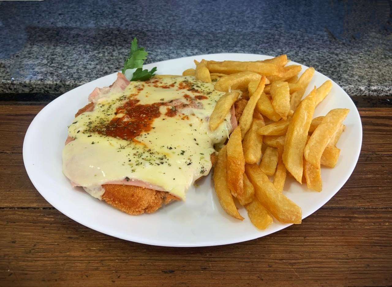 Suprema de pollo a la napolitana con fritas o puré
